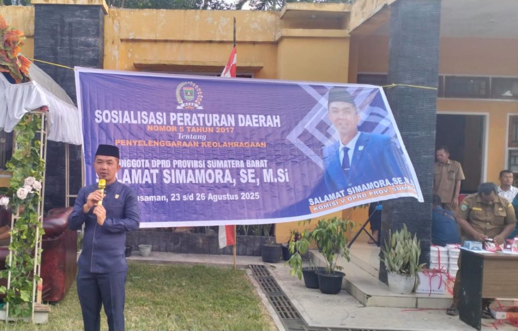 PASAMAN (25/08/2025) – Anggota DPRD Provinsi Sumatera Barat, Salamat Simamora, SE., M.Si, dari Komisi V, melaksanakan Sosialisasi Peraturan Daerah (Sosper) Nomor 5 Tahun 2017 tentang Penyelenggaraan Keolahragaan di halaman kantor Nagari Panti, Senin (25/8/2025).