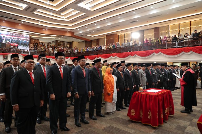 PADANG (28/8/2024) – Sebanyak 65 anggota Dewan Perwakilan Rakyat Daerah (DPRD) Provinsi Sumatera Barat terpilih masa jabatan 2024-2029, resmi dilantik dan diambil sumpah janjinya dalam rapat paripurna istimewa yang digelar di ruang sidang utama kantor DPRD Provinsi Sumatera Barat, Rabu (28/08/2024).