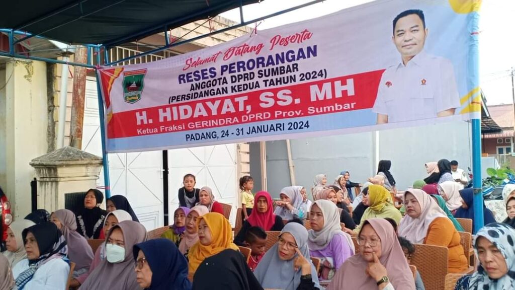 PADANG (28/1/2024) – Anggota DPRD Provinsi Sumatera Barat (DPRD Sumbar) H. Hidayat, SS. MH menggelar reses perorangan pada masa persidangan kedua tahun 2024 di Kelurahan Banuaran Nan XX, Kecamatan Lubuk Begalung, Kota Padang, Sumatera Barat (Sumbar), pada Senin, 28 Januari 2024.