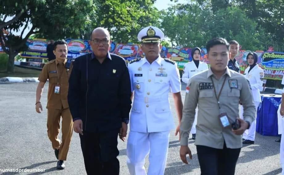 PADANG – Ketua DPRD Provinsi Sumatera Barat (Sumbar), Supardi menghadiri upacara Serah Terima Jabatan (Sertijab) Komandan Lantamal (Danlantamal) II Padang dari Laksamana Pertama TNI Benny Febri kepada Laksamana Pertama TNI Syufenri.