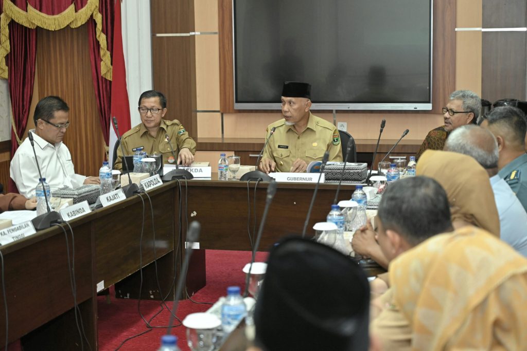 Rapat yang dipimpin Gubernur Sumbar Mahyeldi, untuk pemantapan koordinasi jelang pelaksanaan Pilkada serentak tahun 2024.