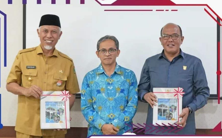 PADANG – Ketua DPRD Provinsi Sumatera Barat Supardi, SH bersama Gubernur Mahyeldi Ansharullah, S.P menyerahkan Laporan Hasil Pemeriksaan (LHP) Kinerja dan Pemeriksaan dengan Tujuan Tertentu (PDTT) Kepatuhan Pemerintah Provinsi Sumatera Barat kepada BPK RI Perwakilan Sumatera Barat, Padang, Selasa, 16 Januari 2024.