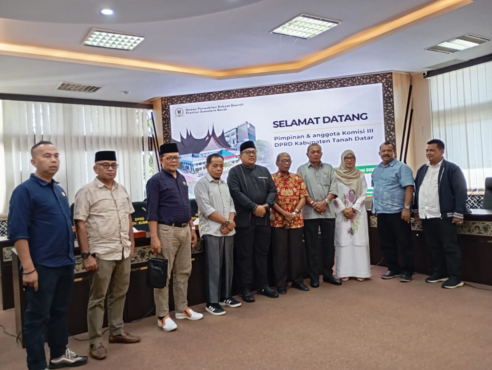 PADANG (30/06/2025) — DPRD Provinsi Sumatera Barat menerima kunjungan kerja pimpinan dan anggota Komisi III DPRD Kabupaten Tanah Datar, Senin (30/6/2025) di ruang rapat khusus 1.