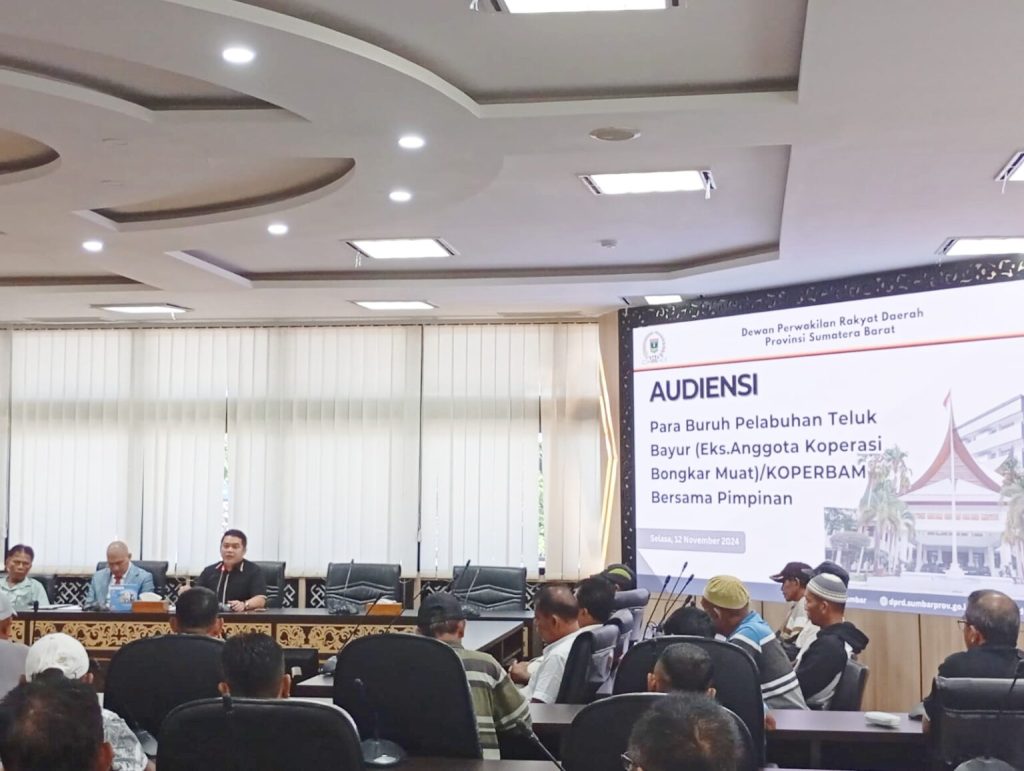 PADANG (14/11/2024) – Sebanyak 84 eks tenaga kerja bongkar muat (TKBM) Teluk Bayur, Kota Padang , Sumatera Barat mendatangi DPRD Provinsi Sumatera Barat, Kamis (14/11/2024).
