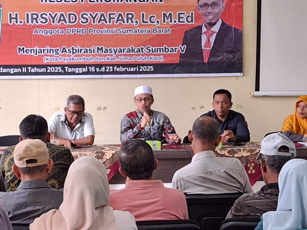PAYAKUMBUH (20/02/2025) – Dalam rangka menampung masukan serta aspirasi masyarakat di Daerah Pemilihan (Dapil) nya, Anggota DPRD Provinsi Sumatera Barat, Irsyad Safar, melaksanakan reses perseorangan masa sidang kedua tahun 2025 di Kantor Lurah Bulakan Balai Kandi, Kecamatan Payakumbuh Barat, Kota Payakumbuh, Kamis (20/2/2025).