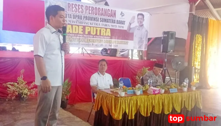 PASAMAN BARAT (26/07/2025) -Anggota DPRD Provinsi Sumatera Barat (Sumbar), Ade Putra, menggelar kegiatan reses masa sidang ketiga tahun 2025 di Nagari Kajai Selatan, Kecamatan Talamau, Kabupaten Pasaman Barat, Sabtu (26/7/2025).